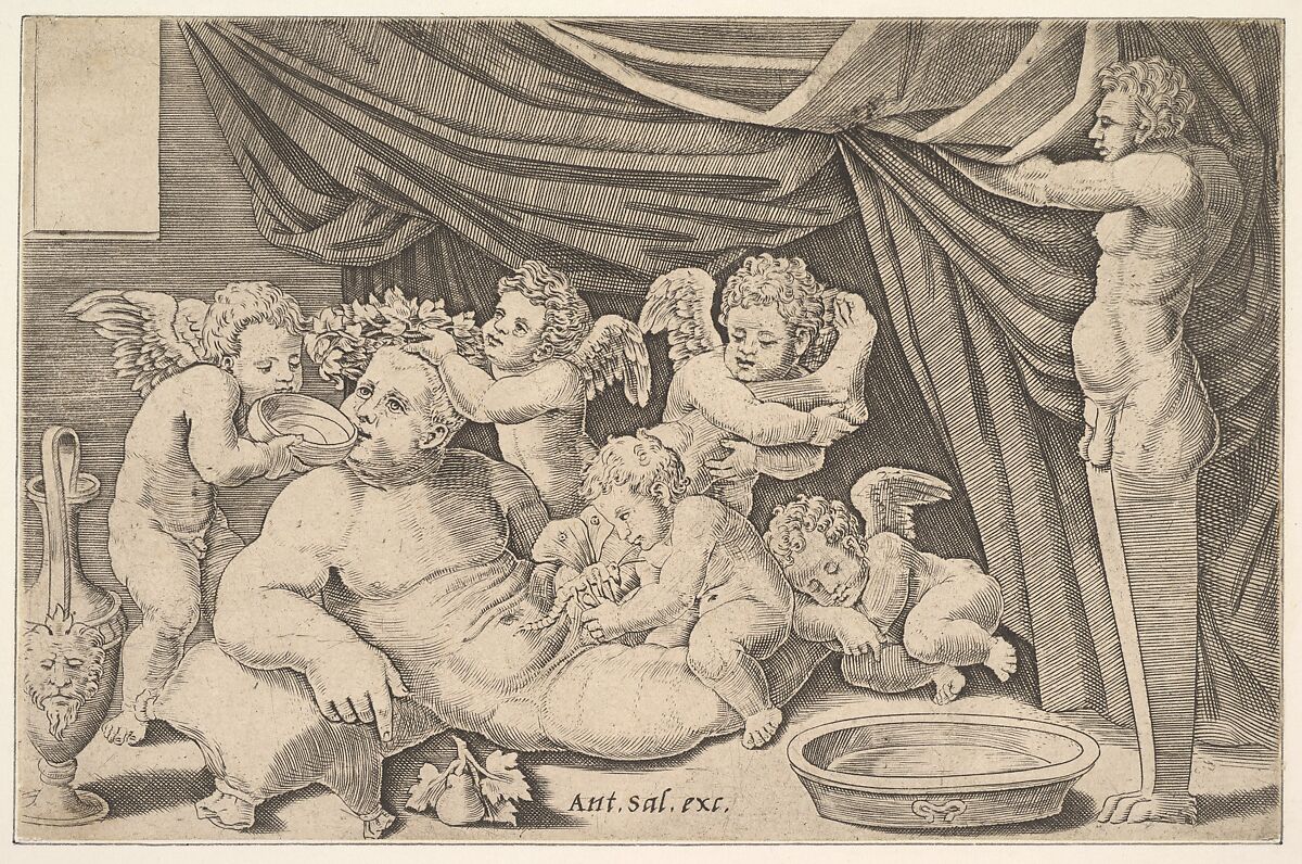 - Title: Bacchus surrounded by Putti, a statue of Priapus at right