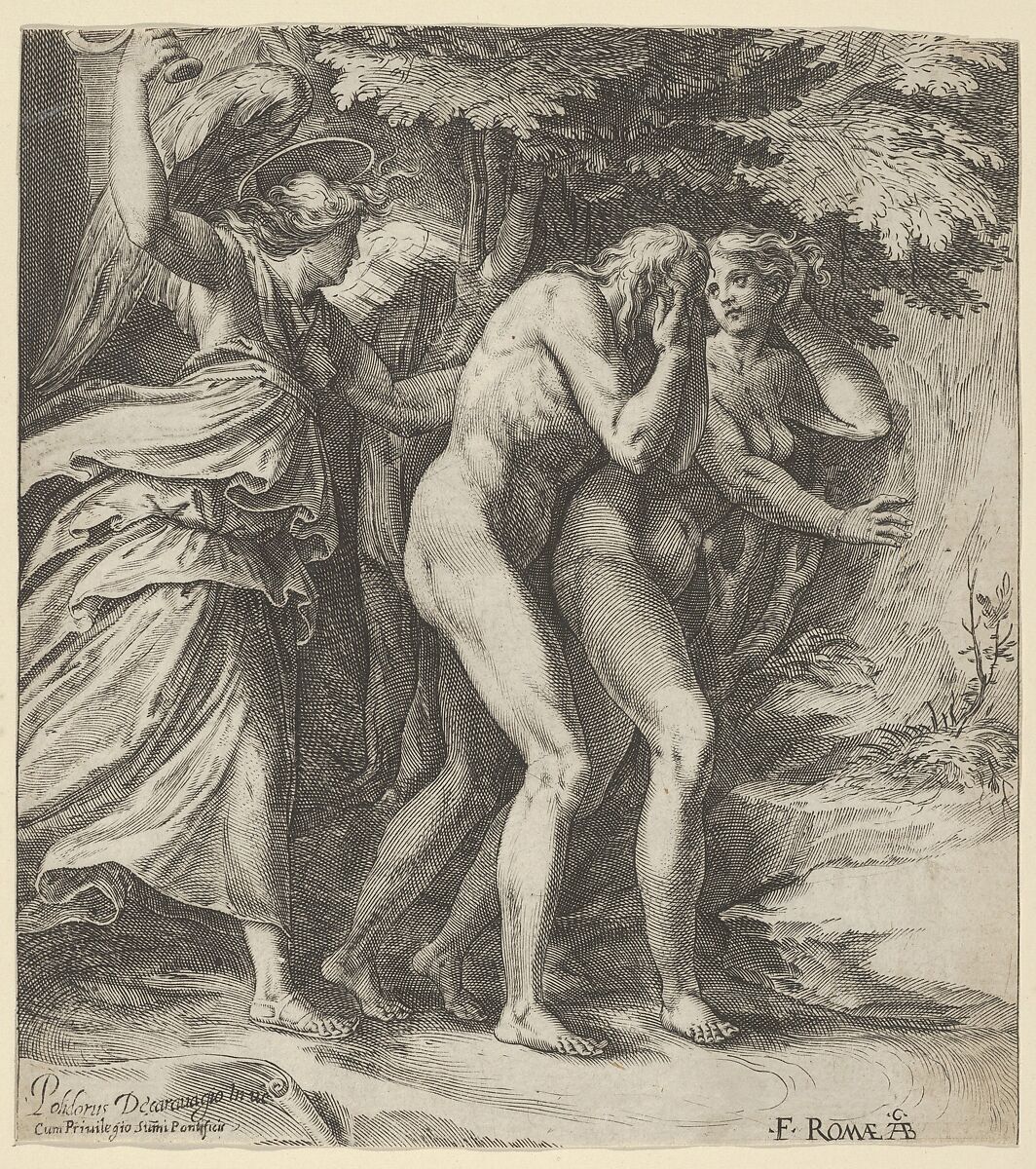 - Title: The Expulsion from Paradise with an Angel wielding a sword behind Adam and Eve