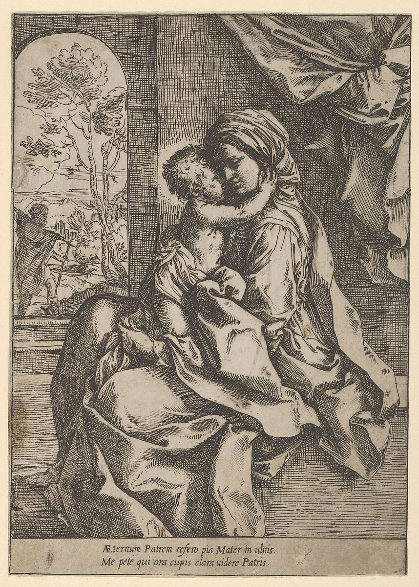 - Title: The Virgin seated with the Christ Child on her lap embracing her, Joseph seen through an archway at left