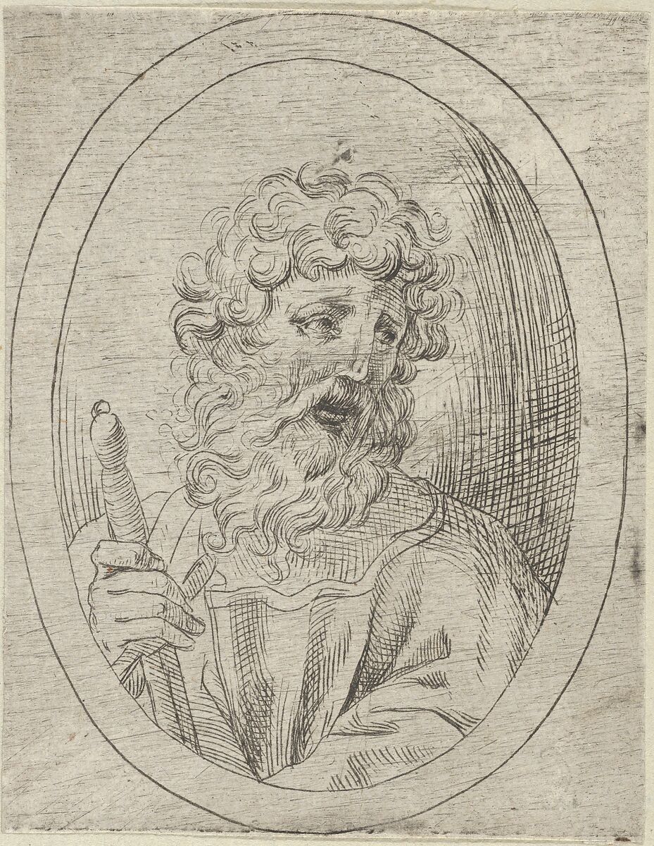- Title: Saint Paul holding a sword, in an oval frame, from "Christ, the Virgin, and Thirteen Apostles"