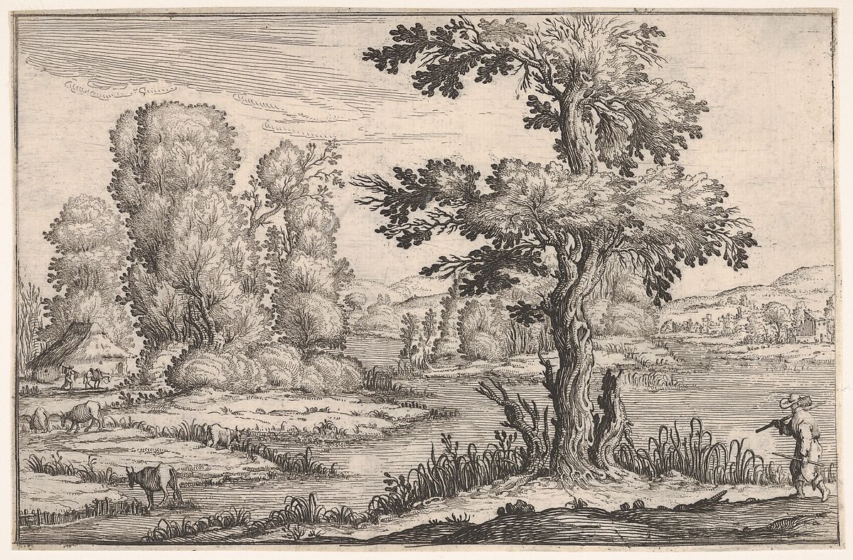 - Title: Landscape with goats grazing near a river and a figure in the right foreground, from a series of landscapes dedicated to the Grand Duke of Tuscany