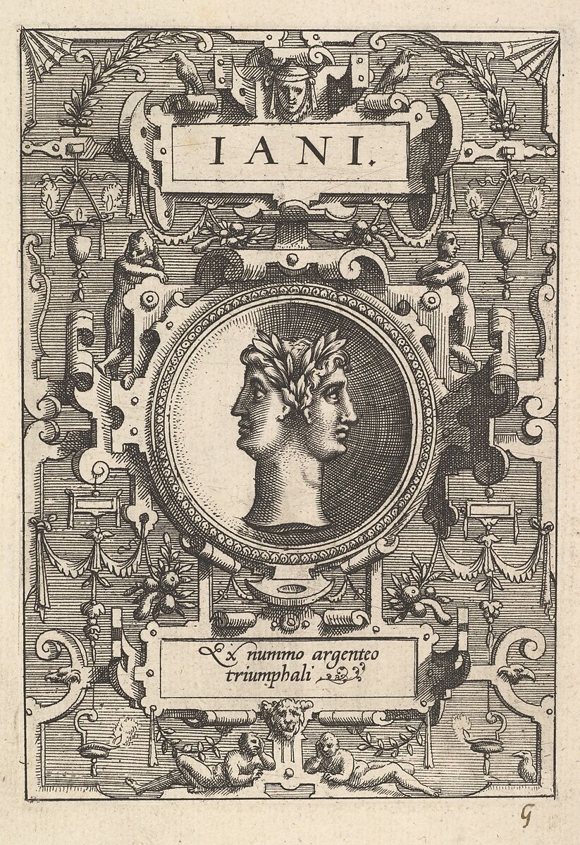 - Title: Bust of Janus surrounded by strapwork, from "Deorum dearumque"