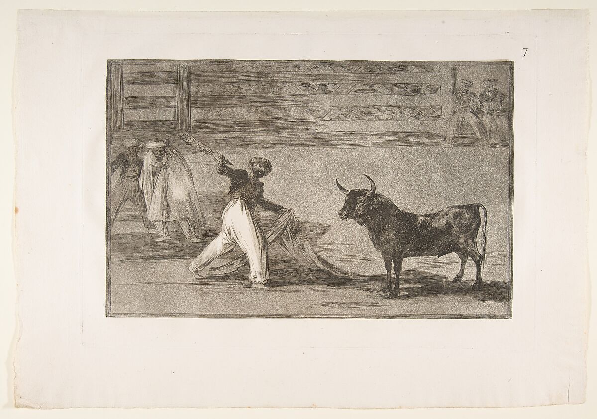 - Title: Plate 7 from "La Tauromaquia": Origin of the harpoon or banderillas