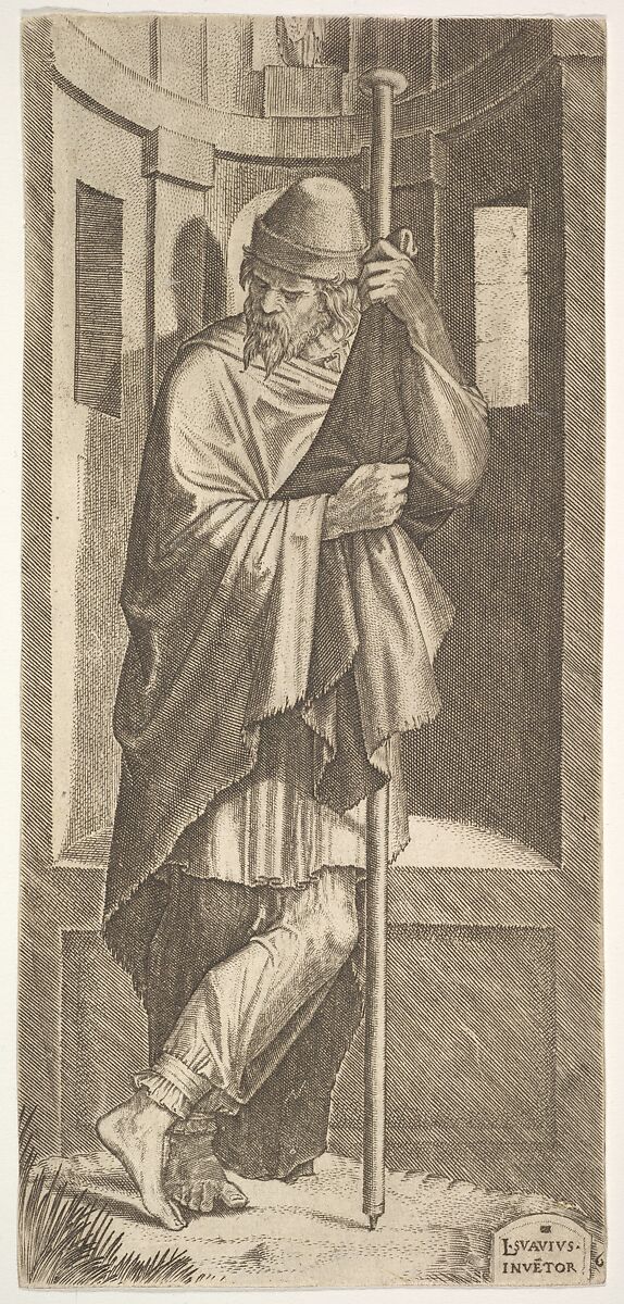 St. James Major leaning on a pole before a niche, from "Christ and the Twelve Apostles"