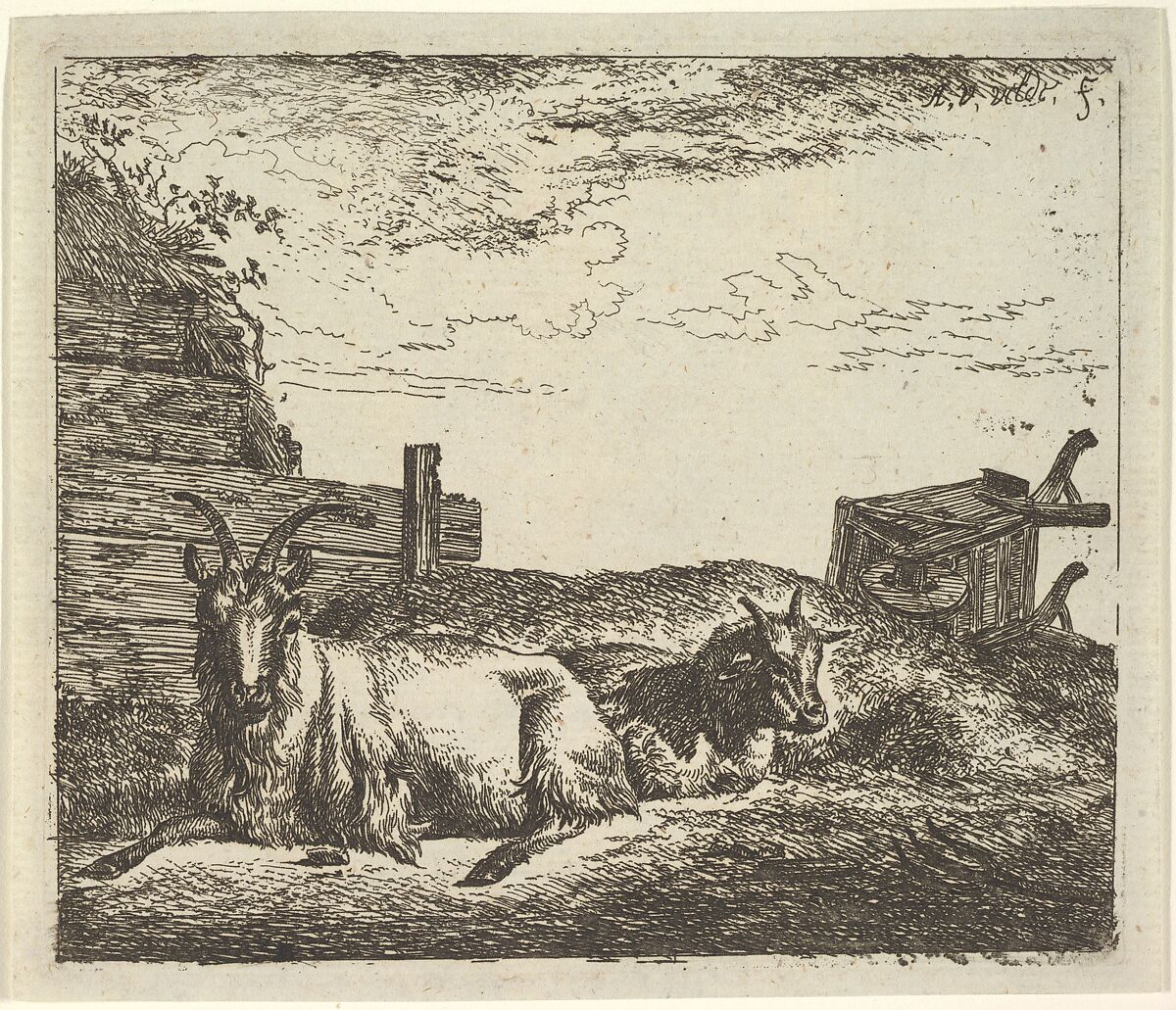 - Title: Recumbent Goats, plate 10 from "Different Animals"