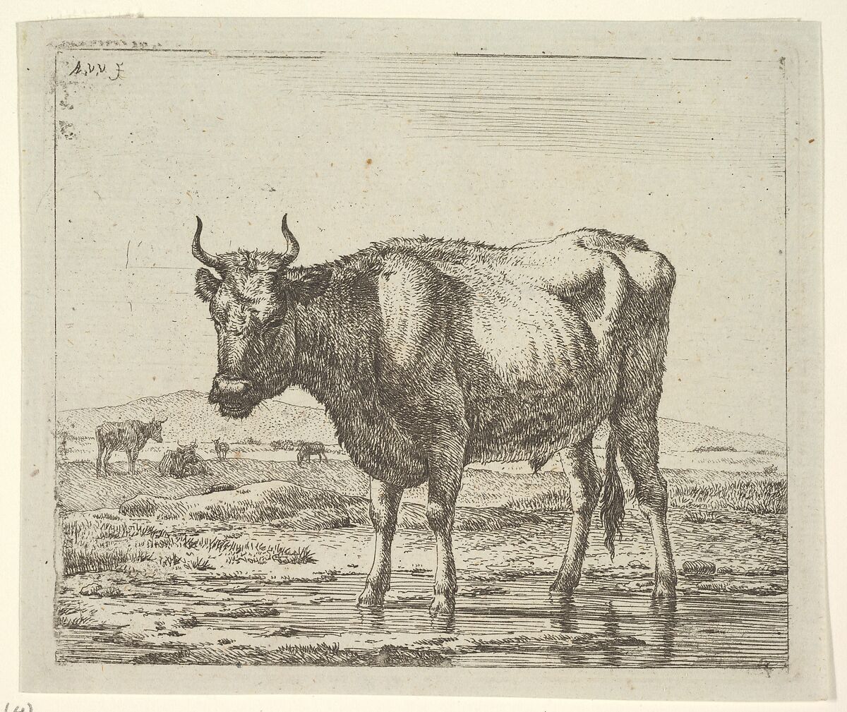 - Title: Bull Standing in Water, plate 6 from "Different Animals"