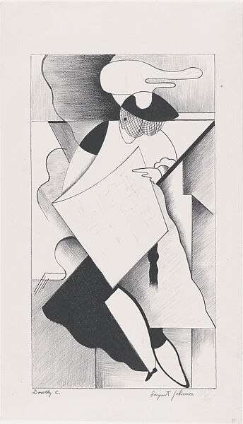 San Francisco Bay Area–artist Johnson was a sculptor of international renown. He also experimented with lithography, gaining access to Work Projects Administration (WPA)-operated printmaking facilities through his role as unit supervisor of the WPA sculpture division. Though his sculptures and prints are markedly different, the process of creating a lithograph by drawing on the surface of limestone has affinities with that of carving and sculpting. Dorothy C evinces Johnson’s engagement with abstraction while retaining referential figuration. Of his subjects, Johnson said, "It is the pure American Negro I am concerned with, aiming to show the natural beauty and dignity in that characteristic lip and that characteristic hair, bearing and manner; and I wish to show that beauty not so much to the white man as to the Negro himself."