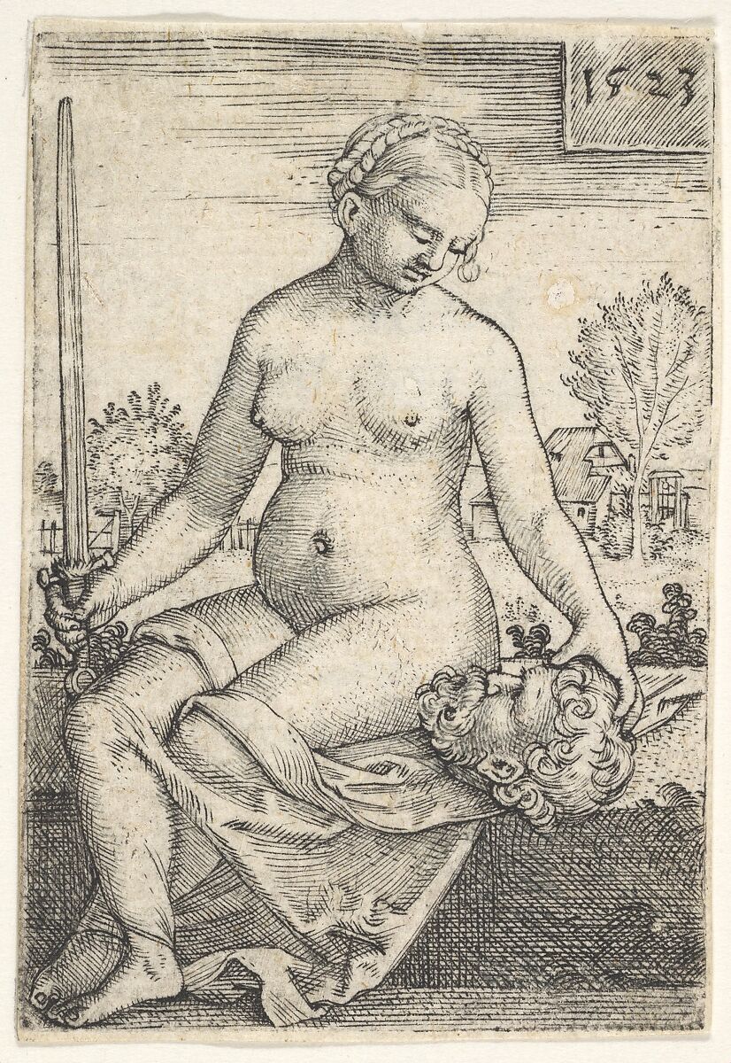 - Title: Judith, seated nude with a sword in her right hand, gazing down at the head of Holofernes in her left hand