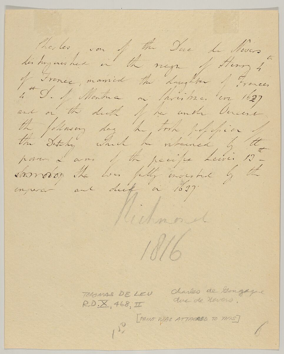 - Title: Charles de Gonzague, Duc de Nevers, attached letter