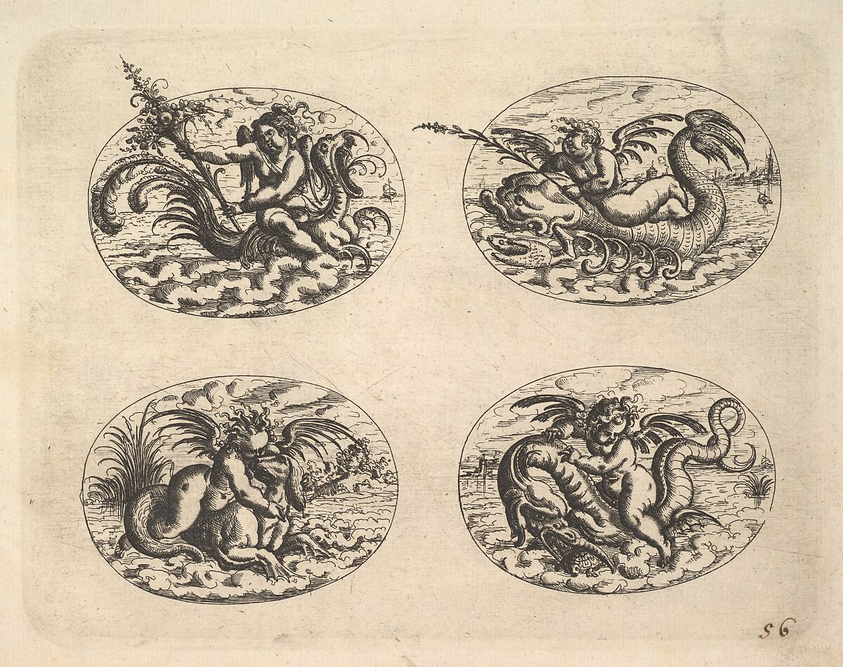 - Title: Four Ovals with Genii, from "Neue Grotessken Buch"