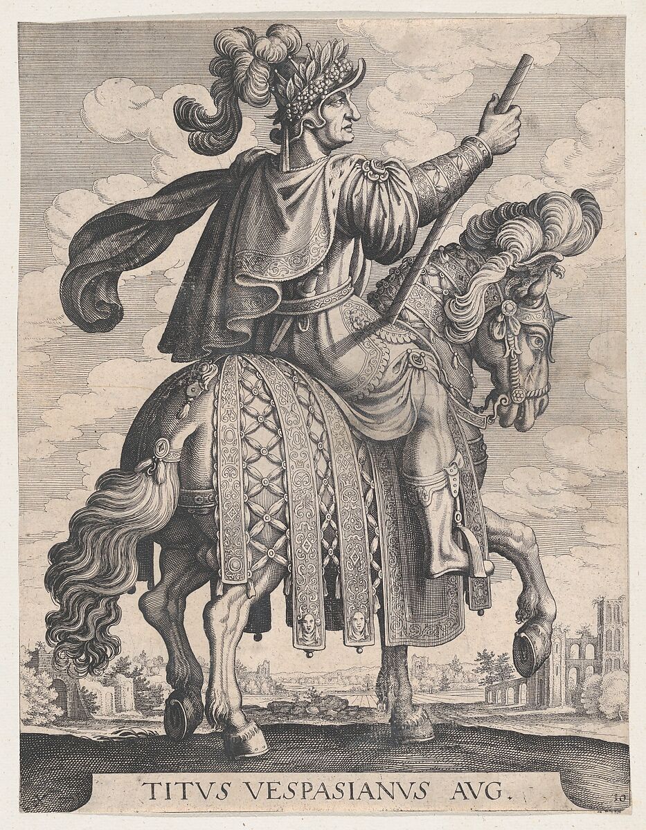 - Title: Plate 10: Emperor Titus on Horseback, from 'The First Twelve Roman Caesars' after Tempesta