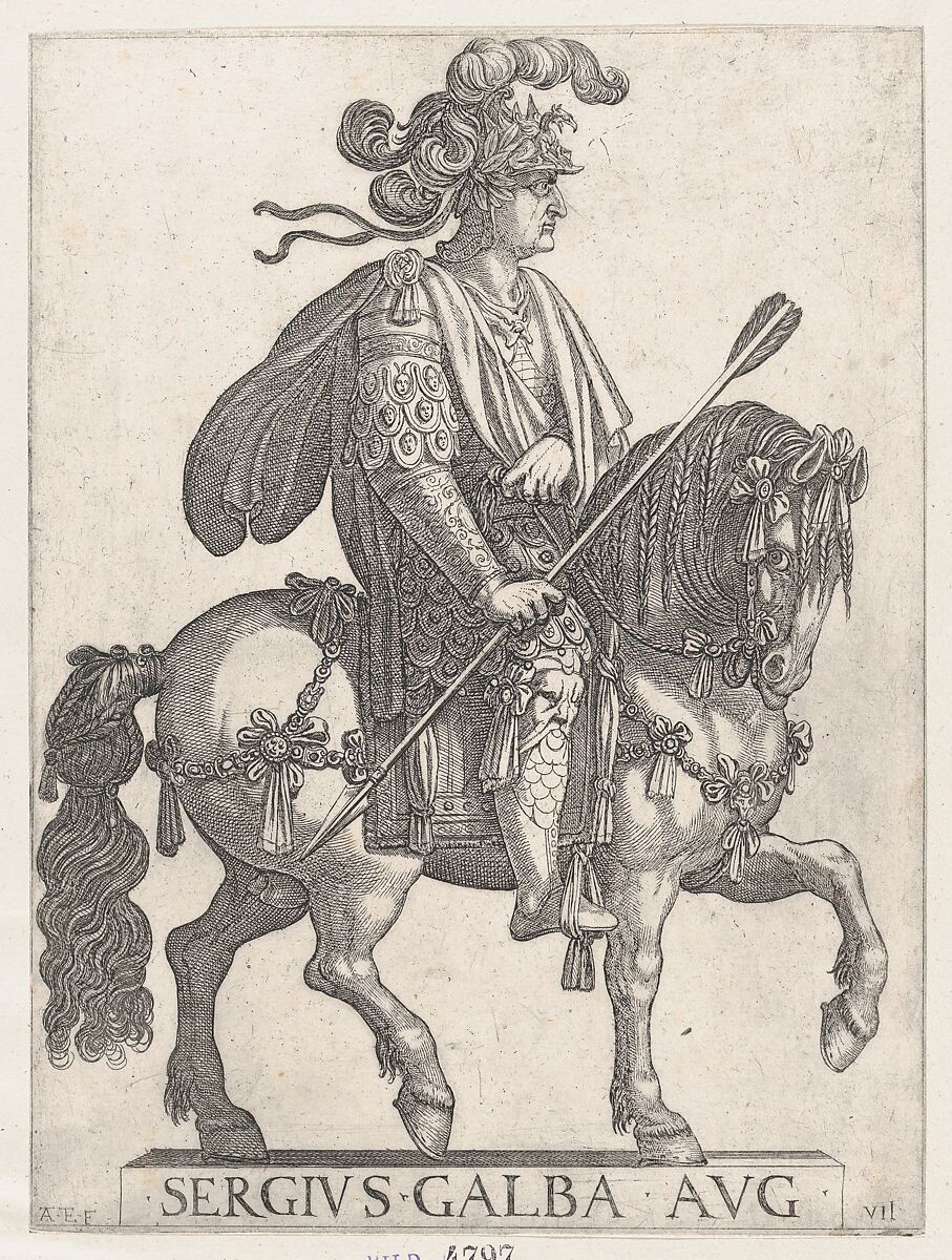- Title: Plate 7: Emperor Galba on Horseback, from 'The First Twelve Roman Caesars'