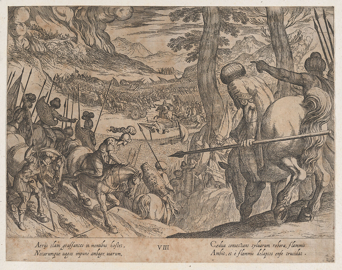- Title: Plate 8: Alexander Encircling the Enemy Troops with Fire, from "The Deeds of Alexander the Great"