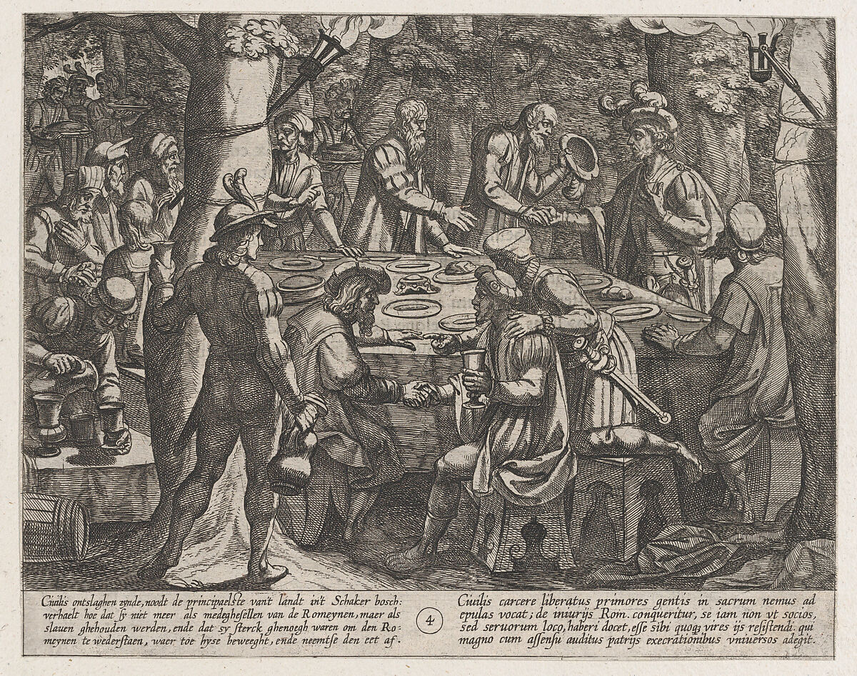 - Title: Plate 4: Civilis tells the Dutch Elders that They are Being Treated Like Slaves by the Romans, from The War of the Romans Against the Batavians (Romanorvm et Batavorvm societas)