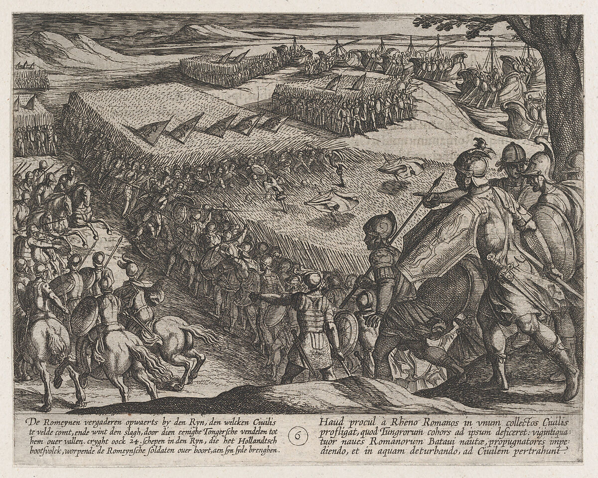 - Title: Plate 6: Romans Defeated Near the Rhine, from The War of the Romans Against the Batavians (Romanorvm et Batavorvm Societas)