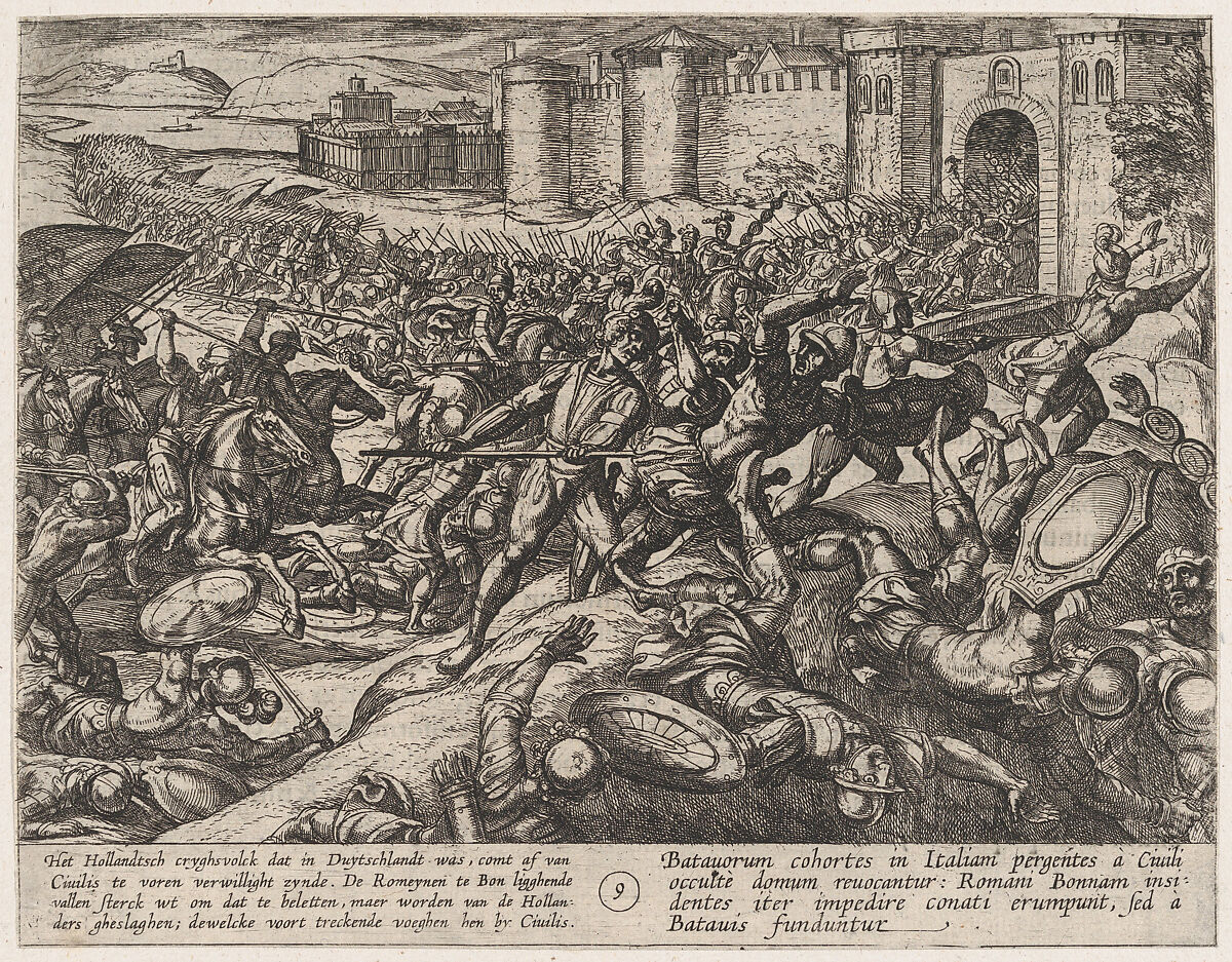 - Title: Plate 9: The Romans Defeated by the Dutch Troops at Bonna, from The War of the Romans Against the Batavians (Romanorvm et Batavorvm societas)