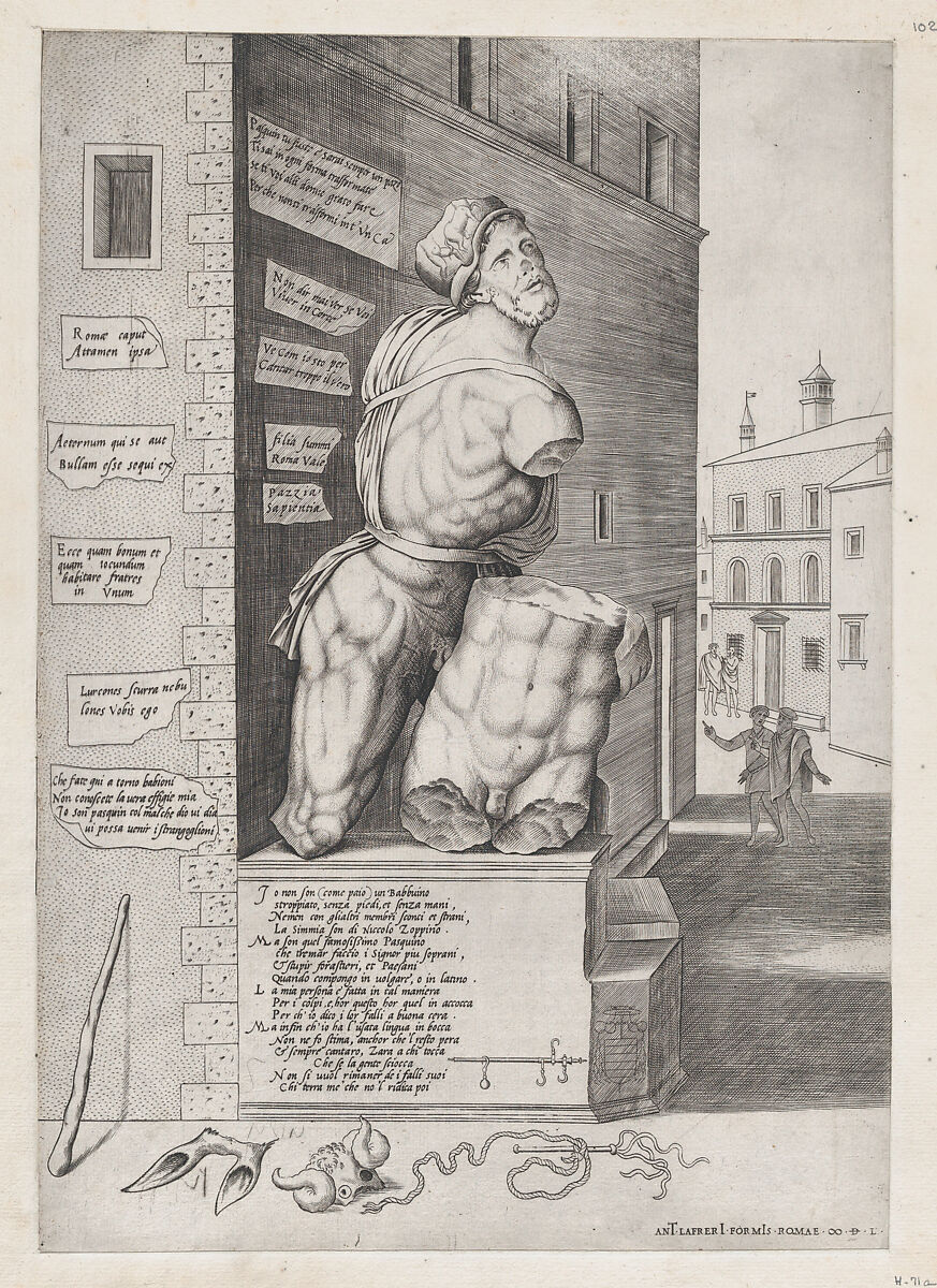 - Title: Statue of Pasquin in the House of Cardinal Ursino, from "Speculum Romanae Magnificentiae"