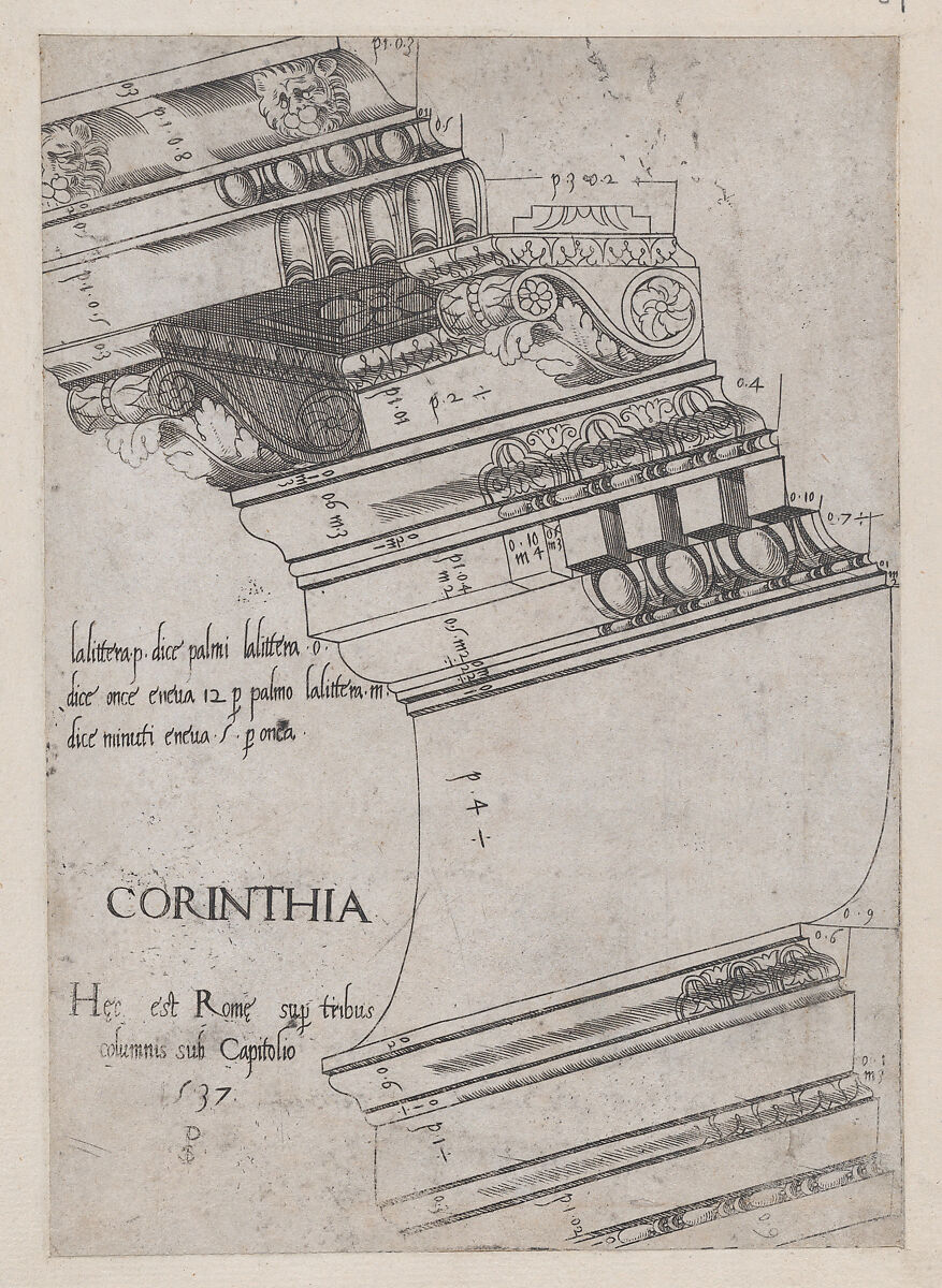 Entablature from the Temple of Vespasian, Rome, from "Speculum Romanae Magnificentiae"
