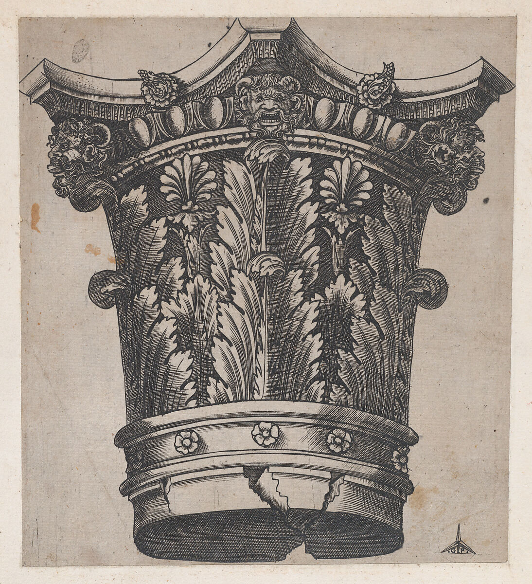 - Title: Capital with heads and masks, from "Speculum Romanae Magnificentiae"