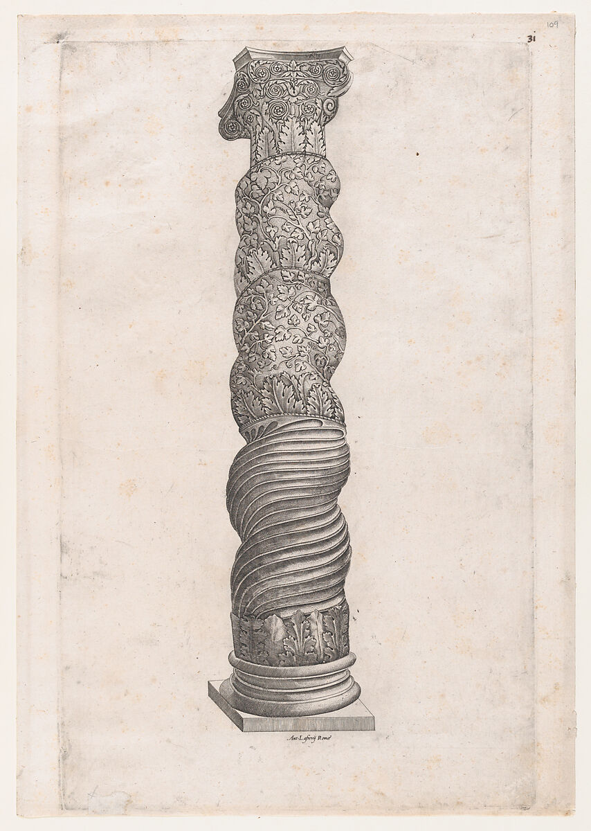 - Title: Grotesque Winding Column in St. Peter's, from "Speculum Romanae Magnificentiae"