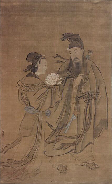 - 清 佚名 傳崔子忠 呂洞賓戯牡丹仙子 軸