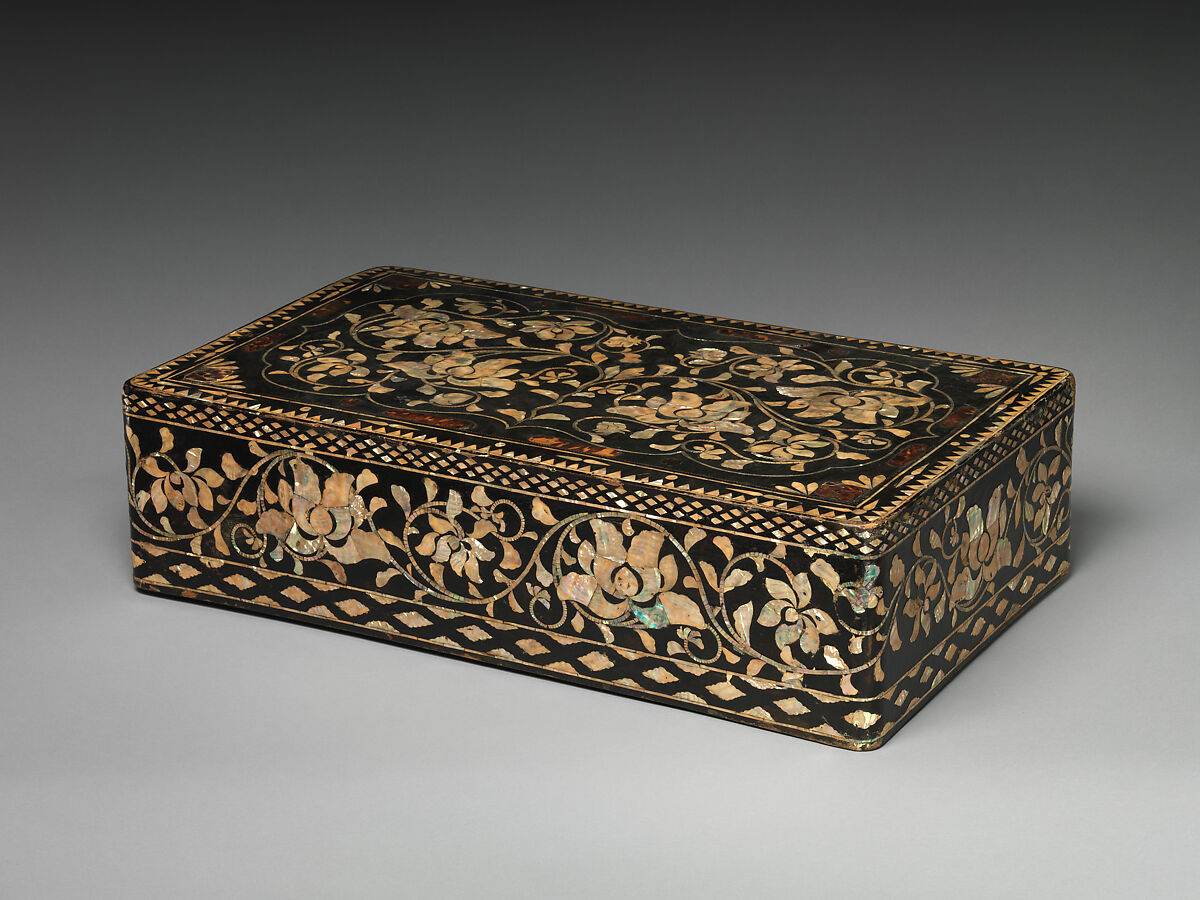- Medium: Lacquer inlaid with mother-of-pearl and tortoiseshell, and brass wire