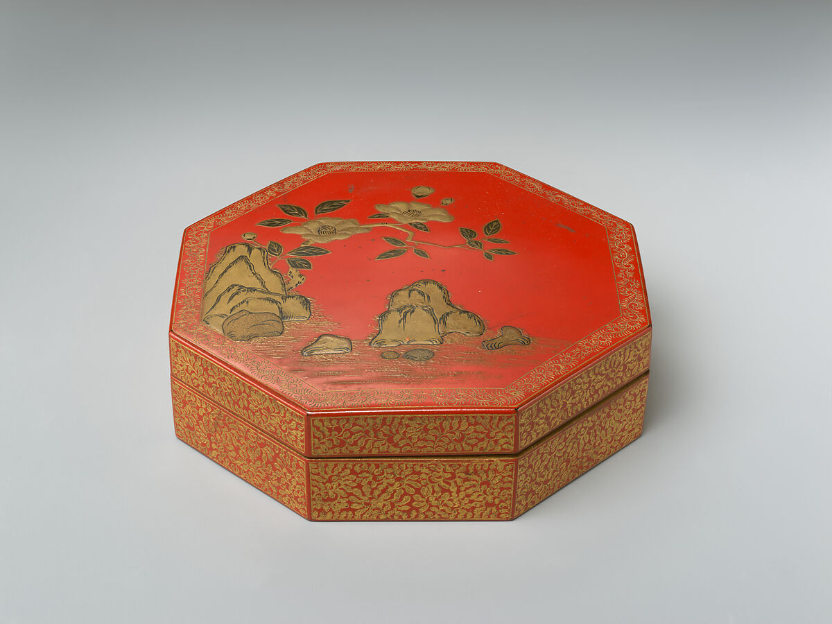 - Medium: Red lacquer with raised-gold and litharge painting and engraved-gold decoration