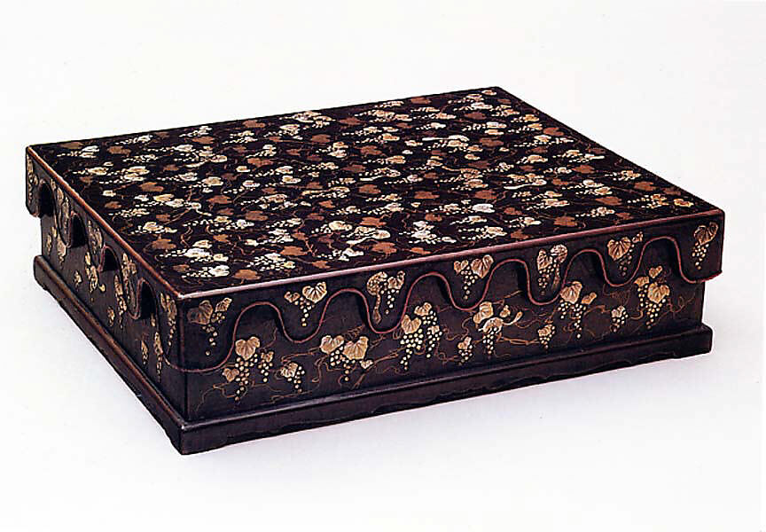 - Medium: Black lacquer with mother-of-pearl inlay and gold painting