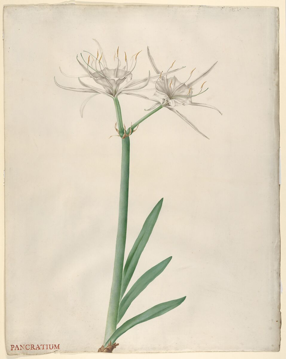 Ehret’s drawings combine scientific understanding with floral beauty. A native of Heidelberg, he developed from an apprentice gardener into an artist associated with botanists across Europe, notably Carl Linnaeus, whose system of binomial nomenclature Ehret helped to disseminate. After settling in London in 1736, the artist remained in touch with another mentor, the Nuremberg botanist Christopher Joseph Trew, sending drawings used to illustrate the latter’s Plantae Selectae quarum imagines ad exemplaria naturalia Londini in hortus curiosorum (1750–73)—ten volumes that describe specimens brought to London from Asia and America. This rendering of a South American narcissus resembles plants discussed in volume three, and the carefully drawn stamens and pistils reflect Trew’s interest in the reproductive systems of flowers.
