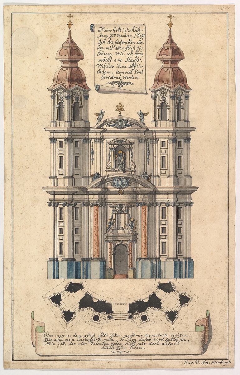 - Title: Baroque Church Façade with Obliquely Placed Towers