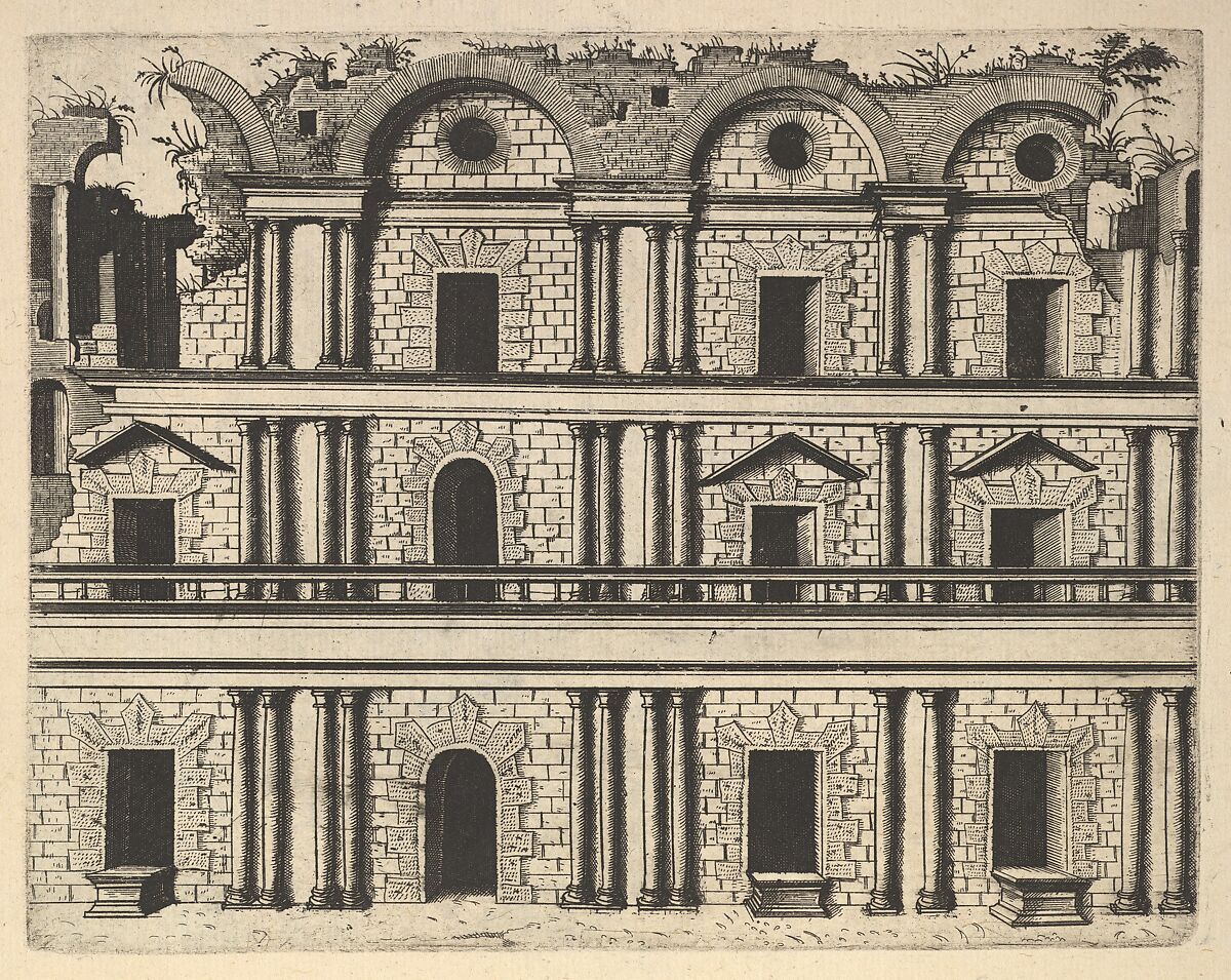- Title: Ruin of a Palace Facade [Palatium M. Agrippa] from the series 'Ruinarum variarum fabricarum delineationes pictoribus caeterisque id genus artificibus multum utiles'