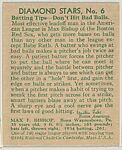 - Title: Max Bishop; verso: Diamond Stars, No. 6, Batting Tips-Don't Hit Bad Balls (1934 Averages)