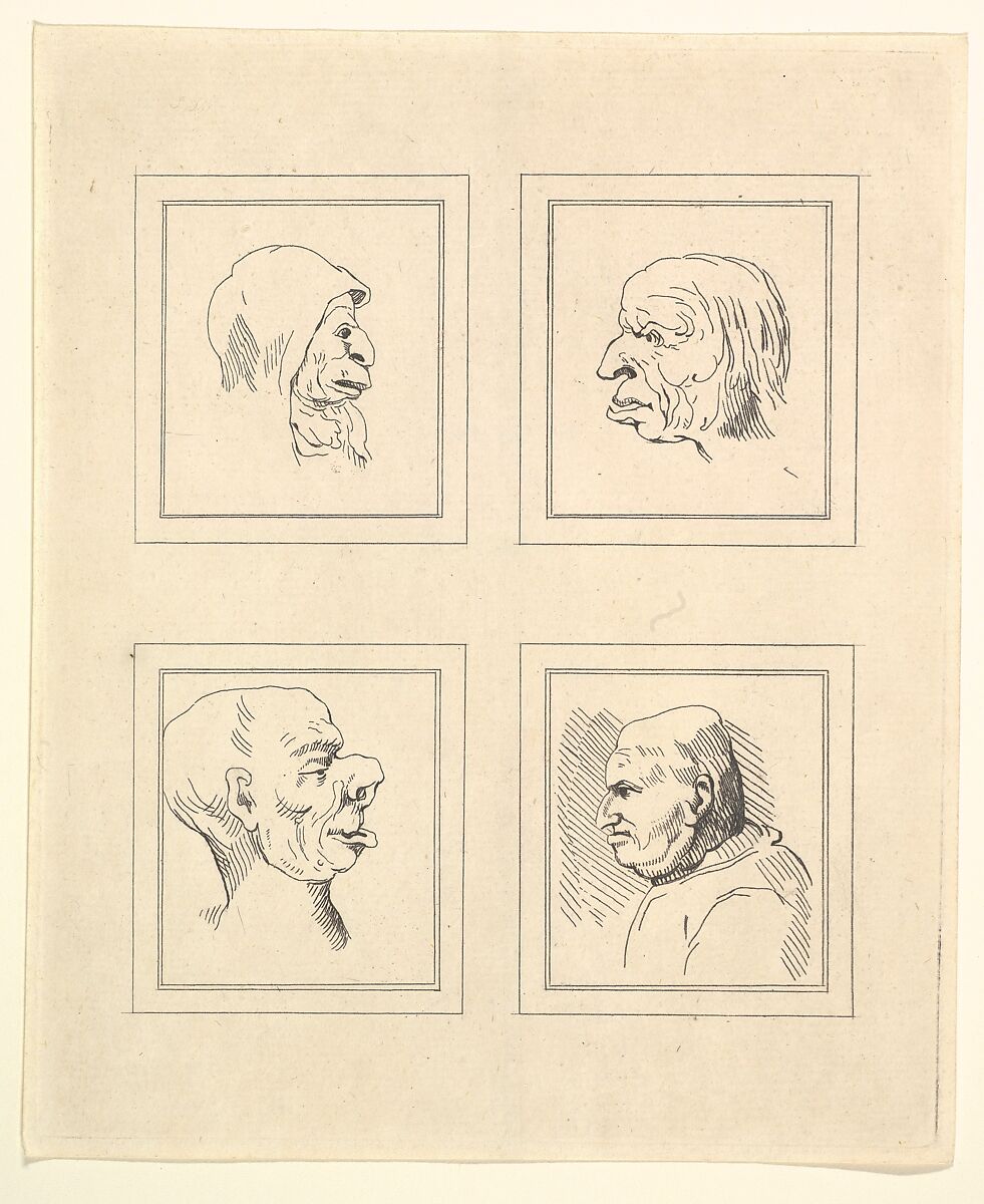 - Title: Four Heads (from Characaturas by Leonardo da Vinci, from Drawings by Wincelslaus Hollar, out of the Portland Museum)
