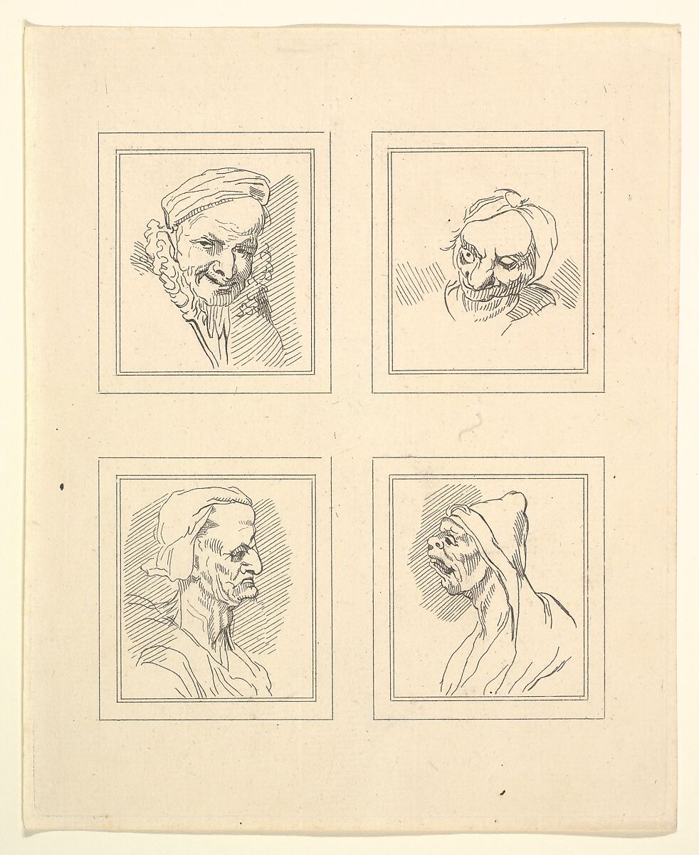 - Title: Four Heads (from Characaturas by Leonardo da Vinci, from Drawings by Wincelslaus Hollar, out of the Portland Museum)