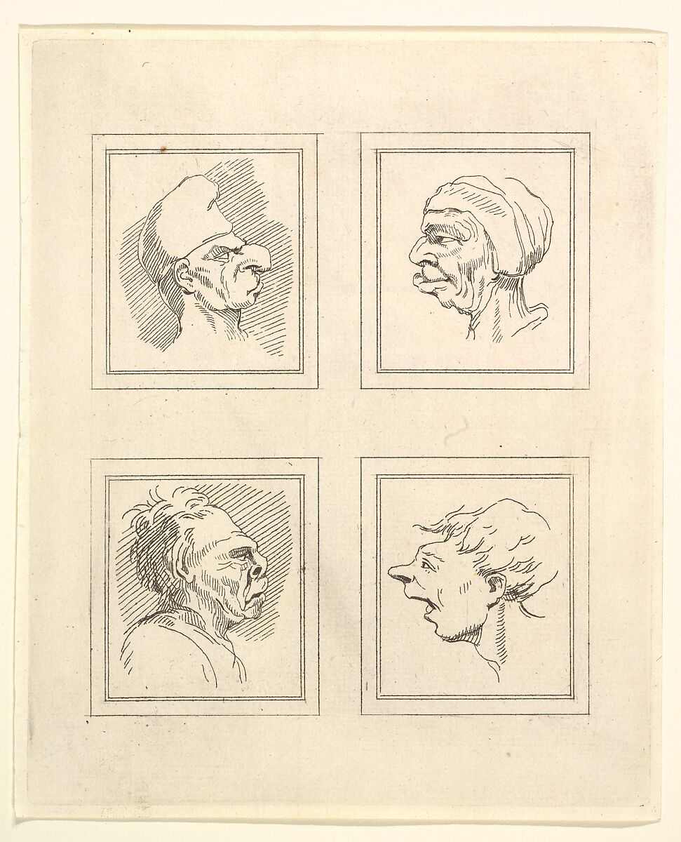 - Title: Four Heads (from Characaturas by Leonardo da Vinci, from Drawings by Wenceslaus Hollar, out of the Portland Museum)