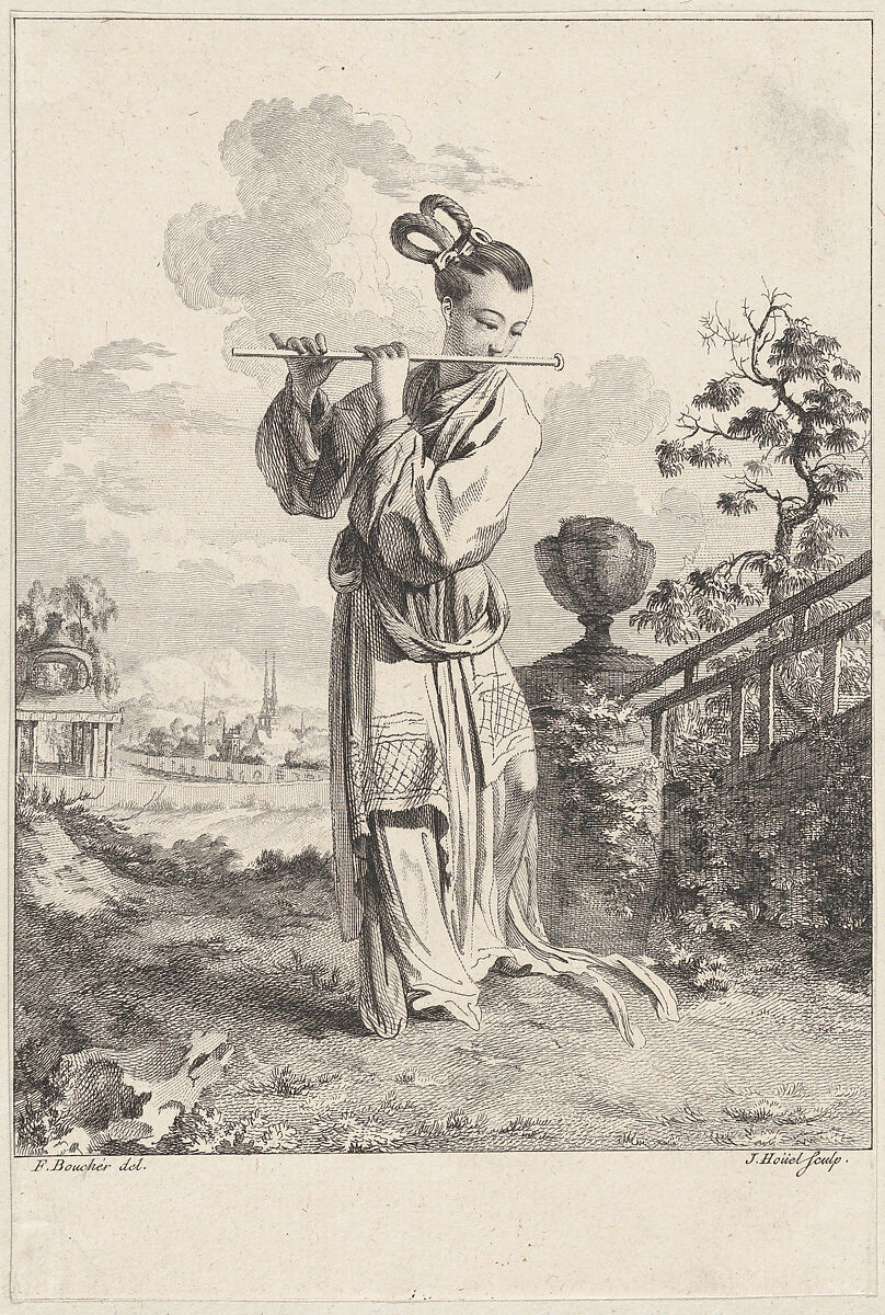 Chinoiserie with a woman playing a flute, from Suite de Figures Chinoises. . .Tiré du Cabinet de Mr. d'Azaincourt (Series of Chinoiserie Figures. . .From the Chambers of Mr. d'Azaincourt)