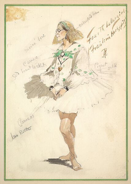 - Title: Costume Design for Fourth Ballet Girl (Fraülein Hochspitz) (Short White Dress), from the play "Captain Jinks of the Horse Marines"