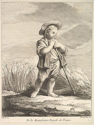 - Title:Little boy holding a vessel, from "Premier Livre de Figures d'après les porcelaines de la Manufacture Royale de France, inventées en 1757, par Mr. Boucher" (First Book of Figures after porcelains from the Manufacture Royale de France, devised in 1757, by Mr. Boucher)