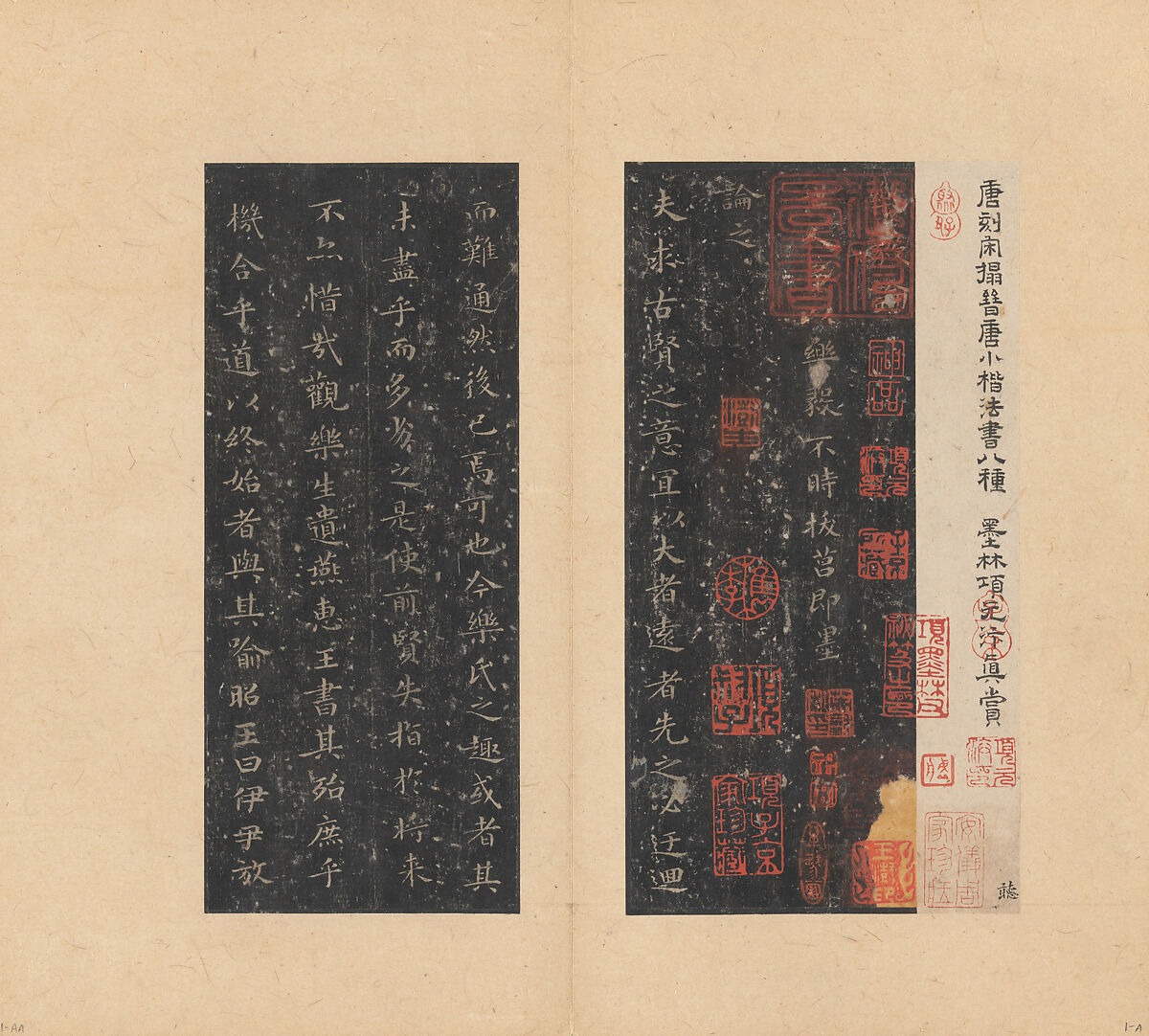 - 晉唐 小楷 法書八種 舊拓本a. 東晉 王羲之 小楷樂毅論 舊拓本b. 東晉 王羲之 行楷蘭亭序 舊拓本c. 東晉 王羲之 小楷曹娥碑 舊拓本d. 東晉 傳王羲之 小楷黃庭經 舊拓本e. 東晉 王獻之 小楷洛神賦 舊拓本f. 佚名 小楷樂毅論 舊拓本g. 唐 虞世南 小楷破邪論序 舊拓本 h. 唐 褚遂良 小楷陰符經 舊拓本