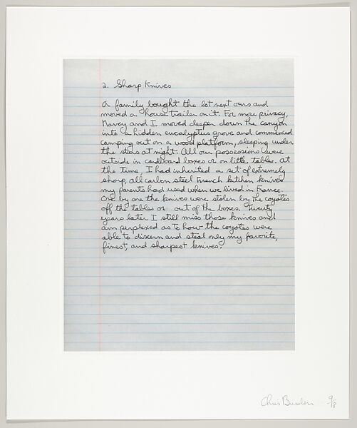 - Artist: Chris Burden (American, Boston, Massachusetts 1946–2015 Topanga Canyon, California)