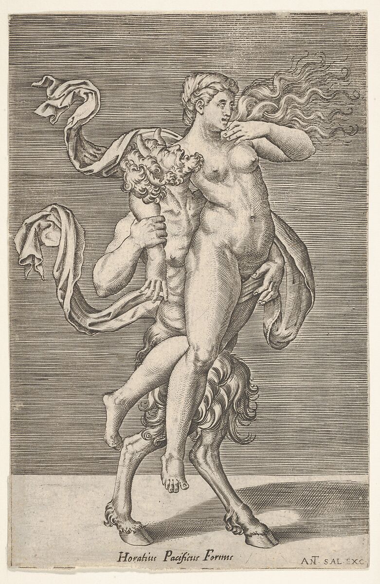- Title: Satyr carrying a nymph, whose right arm is wrapped around the satyr's neck, with a planar background