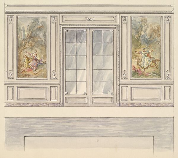 - Title: Design for a Wall Elevation with a Double Glass door and Two Painted Panels (Fourth Floor)