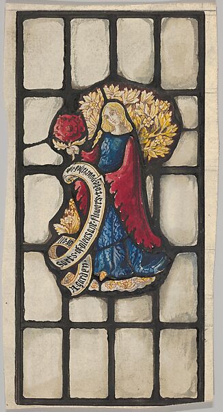- Title: Woman Holding a Rose: Design for a Stained Glass Window (probably for the Belmont House, New York)