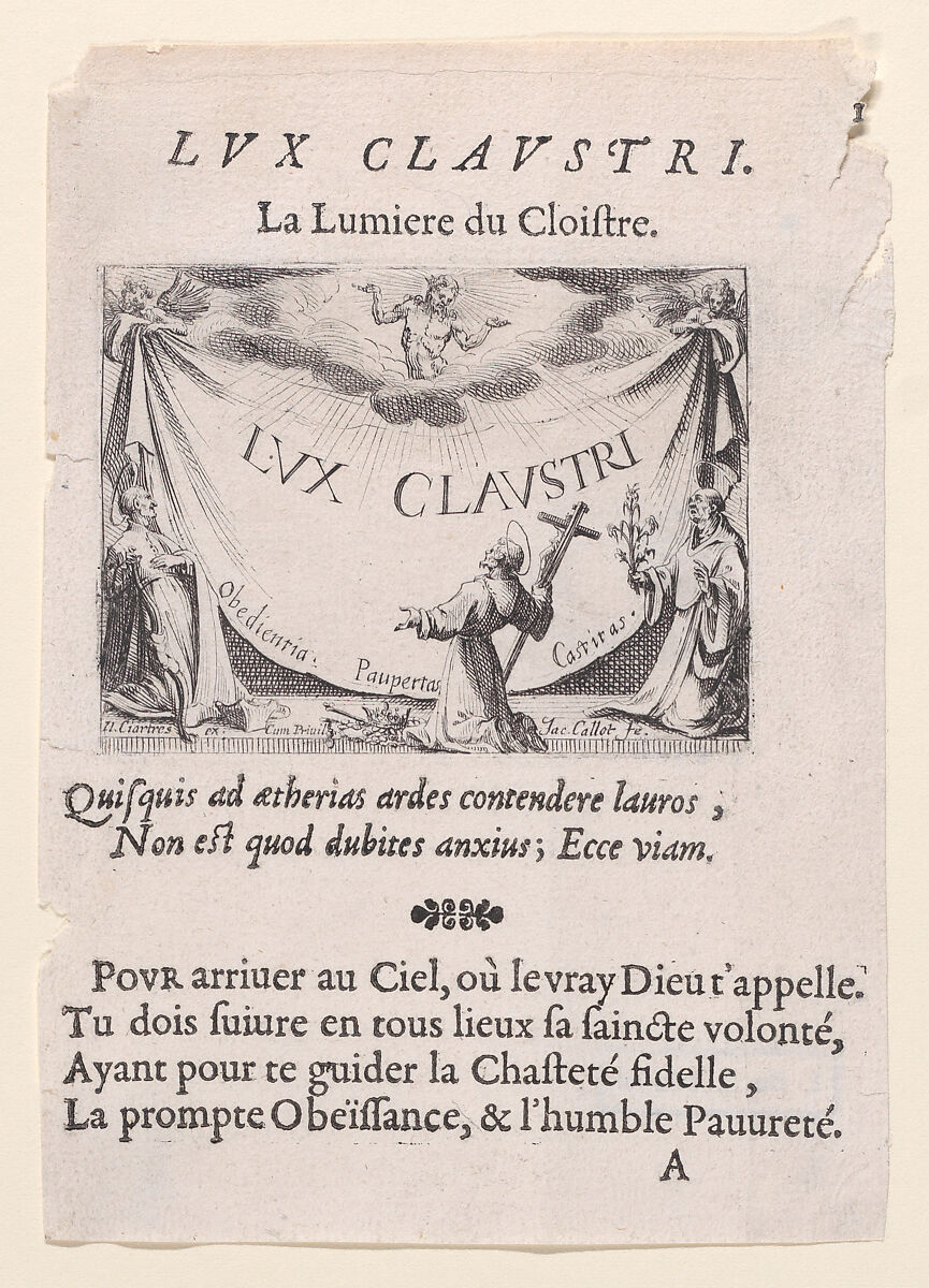 - Title: Frontispiece, plate 1 from "Lux Claustri ou La Lumière du Cloitre" (The Light of the Cloisters)