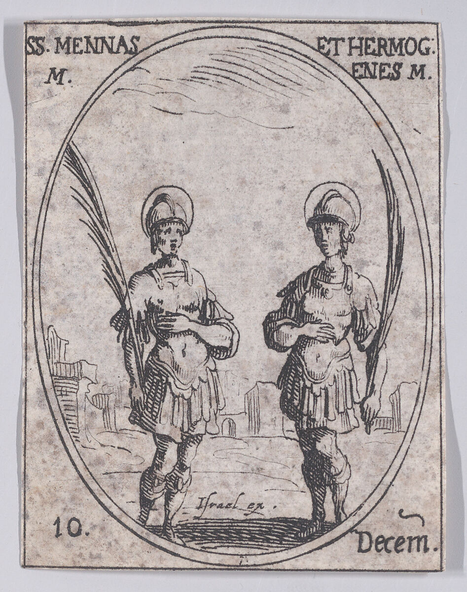 - Title: S. Mène et S. Hermogène (St. Mennas and St. Hermogenes), December 10th, from "Les Images De Tous Les Saincts et Saintes de L'Année" (Images of All of the Saints and Religious Events of the Year)