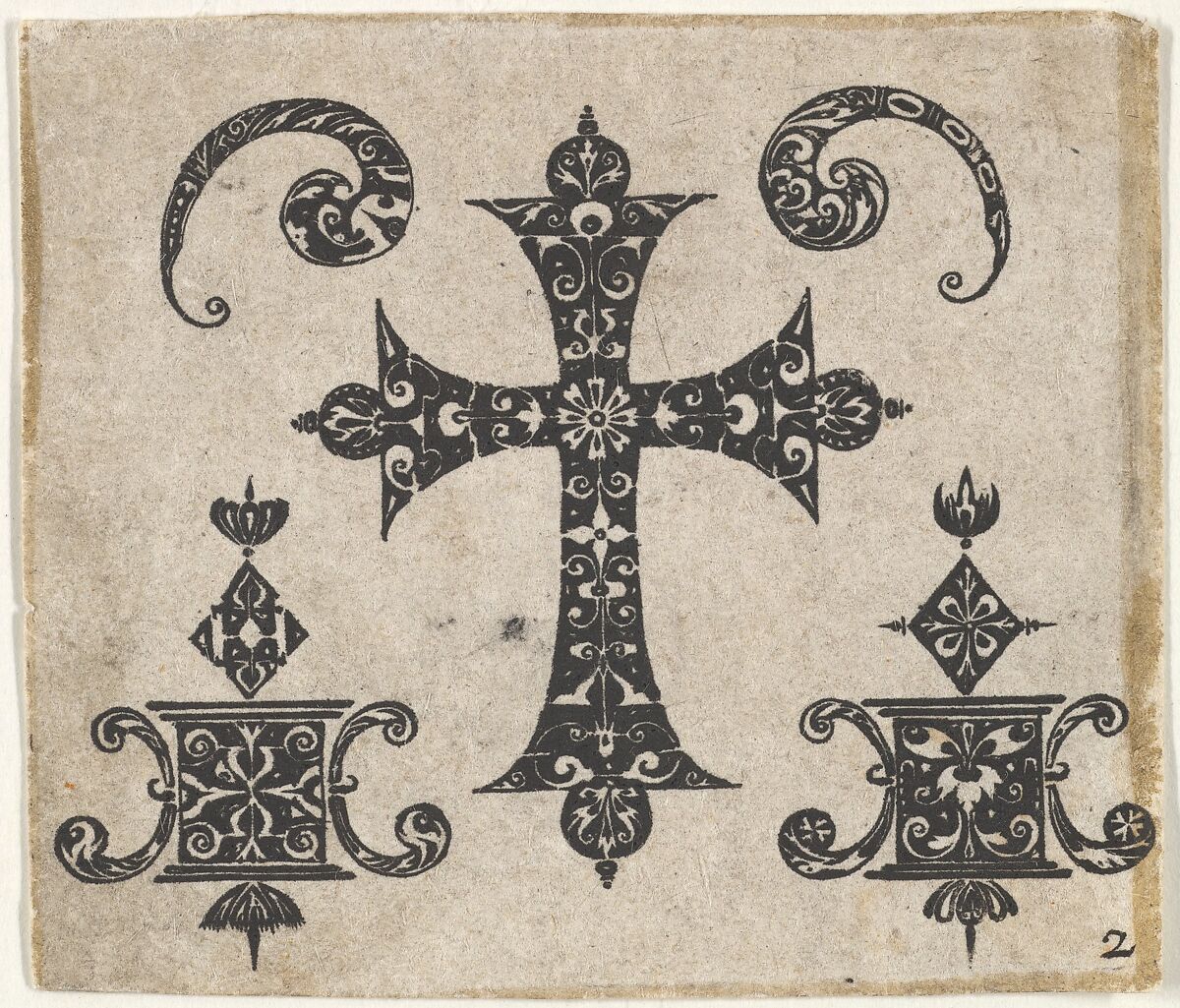 - Title: Blackwork Print with a Latin Cross and Small Motifs