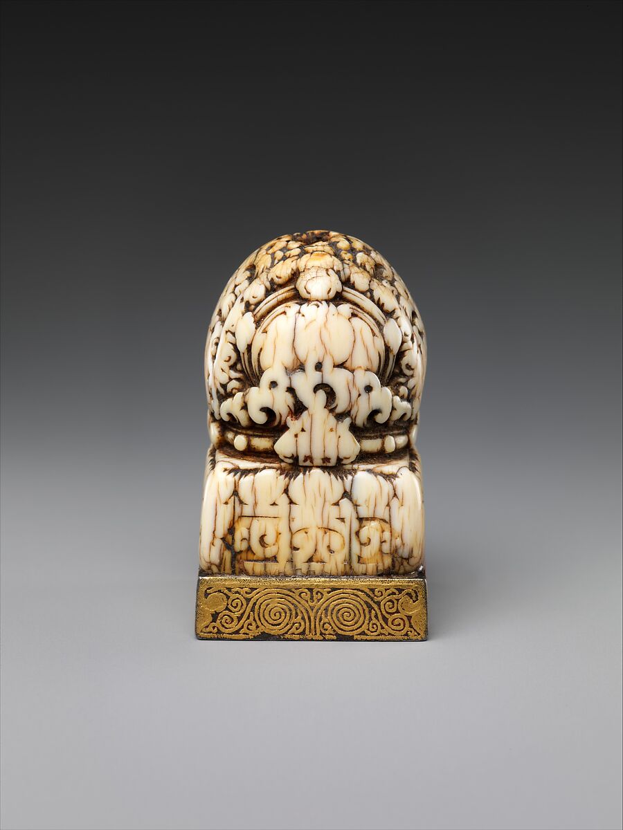 Written in Vartu script, the six characters engraved on the bottom of this seal read "aa-ra-pa-tza-na-dhi," which is a mantra of Manjusri, the bodhisattva of wisdom. First developed in India, Vartu script was adapted from cursive Sanskrit by Tibetan monks for ritual use from the eleventh century onward.