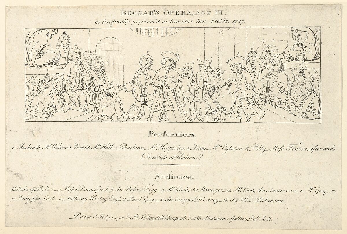 - Title: Key with List of Performers and Audience to: The Beggars Opera