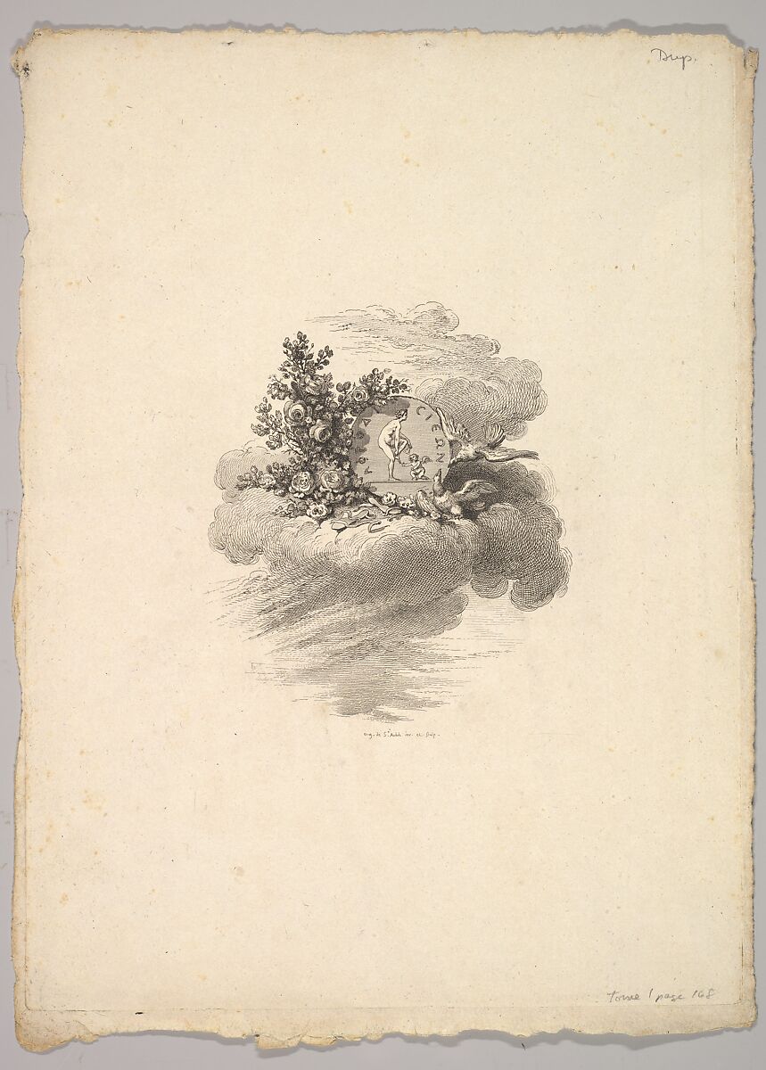 Vignette with Coin on a Cloud with Roses to the left and Doves Below and to the Right, Tome I, Page 148, from Description des Principales Pierres gravées du Cabinet de S.A.S. Monseigneur le Duc d'Orléans Premier Prince du sang. A Paris chez M. l'abbé de la Chau au Palais-Royal M. l'abbé Le Blond au collége Mazarin Et chez Pissot, libraire, quai des Augustins