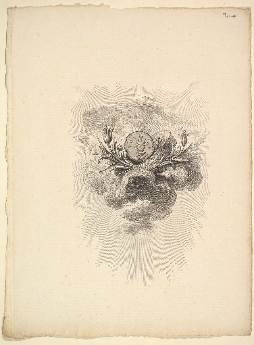 - Title: Vignette with a Medal depicting Harpocrate and Lotus Flowers, Volume I, Page 12, from Description des Principales Pierres gravées du Cabinet de S.A.S. Monseigneur le Duc d'Orléans Premier Prince du sang. A Paris chez M. l'abbé de la Chau au Palais-Royal M. l'abbé Le Blond au collége Mazarin Et chez Pissot, libraire, quai des Augustins